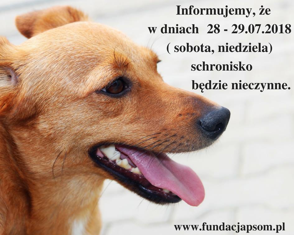 UPRZEJMIE INFORMUJEMY, ŻE W NAJBLIŻSZY WEEKEND SCHRONISKO JEST NIECZYNNE – PRZEPRASZAMY !
