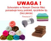 Schronisko w Nowym Dworze Maz. potrzebuje kocy, pościeli, ręczników itp. (bez pierza) Prosimy o pomoc.