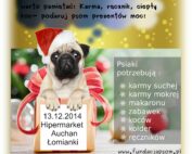 Dnia 13 grudnia 2014 roku przy współpracy z Hipermarketem Auchan w Łomiankach zorganizowaliśmy zbiórkę darów dla naszych podopiecznych.