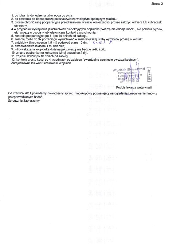 ul. Śreniawitów 9 Warszawa za opiekę nad naszym Łapkiem i ogromny rabat .