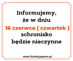 Strona główna•Informujemy, że w dniu 16 czerwca schronisko będzie nieczynne.•Dodaj podtytuł