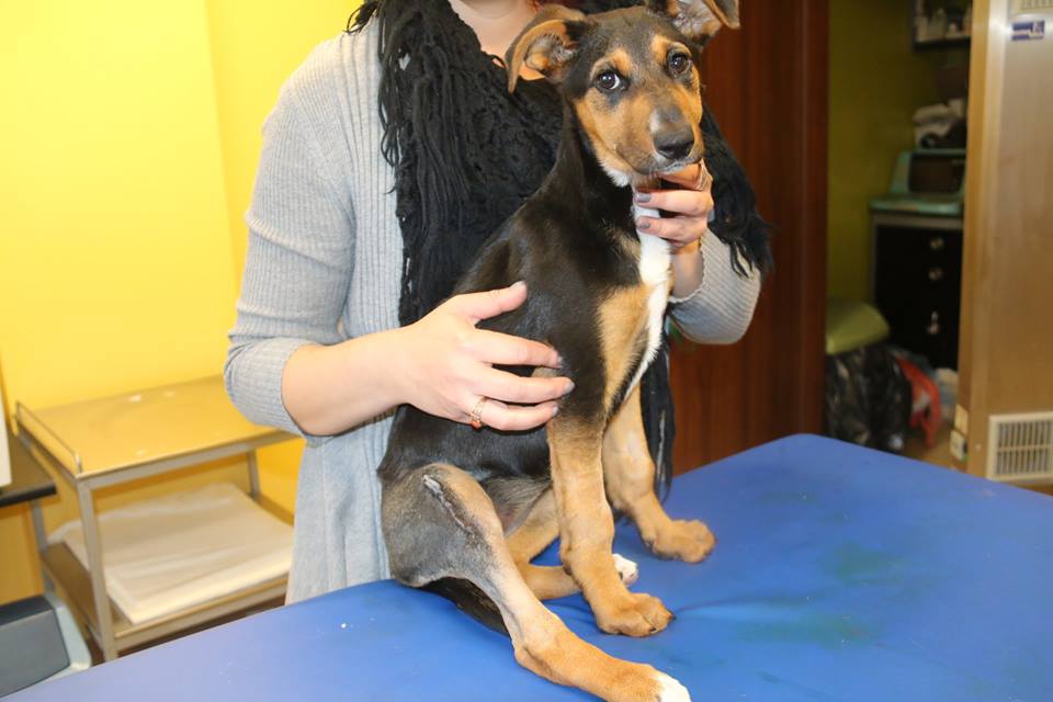W trakcie diagnostyki u Mandarynki stwierdzono kilkudniowe złamanie kości udowej prawej ze znacznym przemieszczeniem. Sunia przeszła operację osteosyntezy złuszczenia nasady dalszej kości udowej prawej. Stabilizacji dokonano przy użyciu dwóch prętów Kirshera i pojedyńczego pręta Rusha. Teraz Mandarynka dochodzi do siebie i już nie może się doczekać kiedy będzie mogła biegać i bawić się jak na szczeniaka przystało.