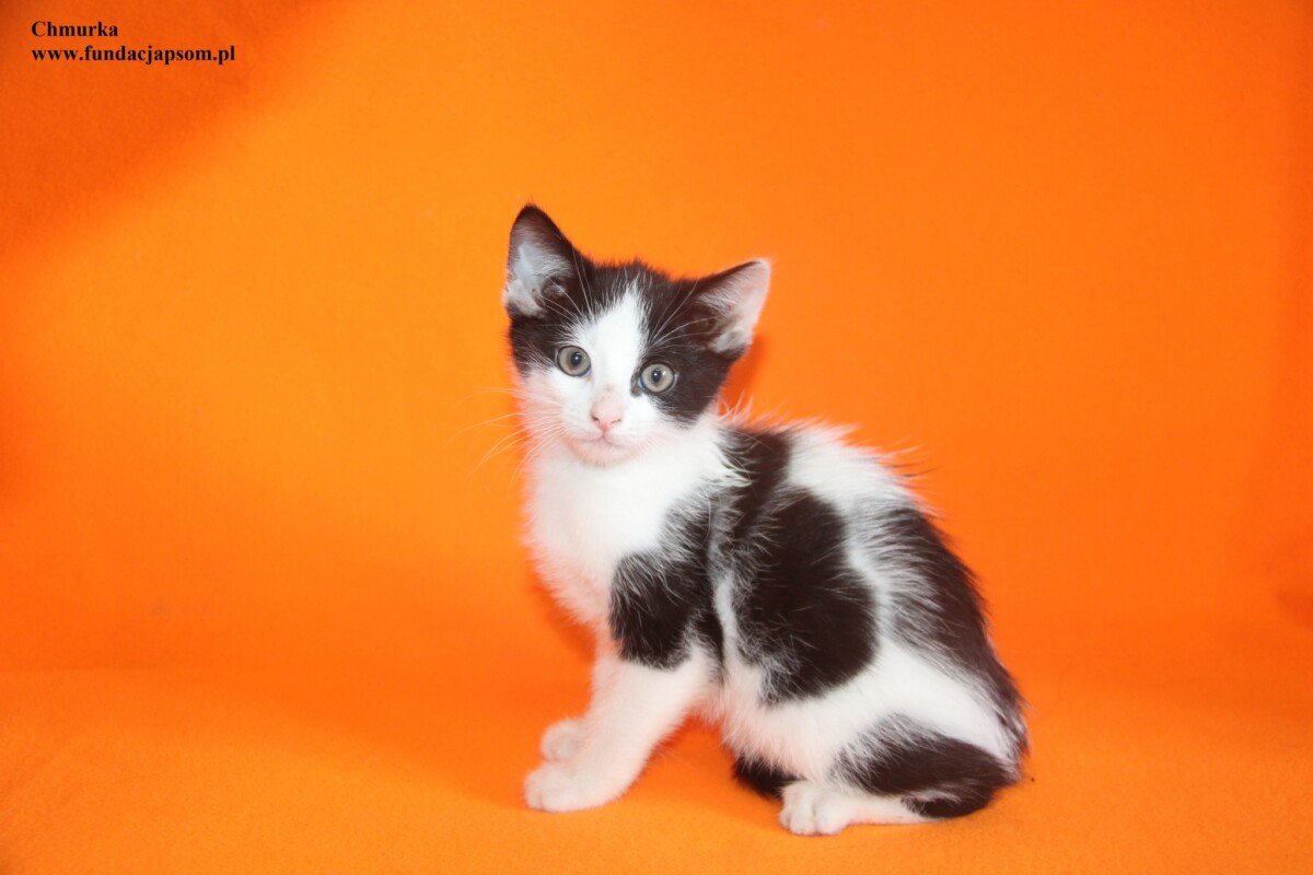 Chmurka to mała istotka , która przyjechała do nas wraz ze swoim rodzeństwem z Marek. Kociak ma około 3 miesiące i jak na małego kociaka przystało jest bardzo pocieszna, ma dużo energii do zabawy i psocenia. Chętnie daje się brać na rączki, uwielbia się łasić pięknie przy tym mrucząc.
