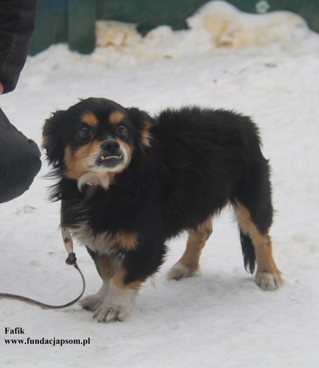Fafik to mały około 11 letni piesek, który przyjechał do nas z Długosiodła po stracie swojego właściciela. Jest to piesek, który przyjaźnie jest nastawiony do ludzi, chętnie wychodzi na spacerek, nauczony jest chodzenia na smyczy,